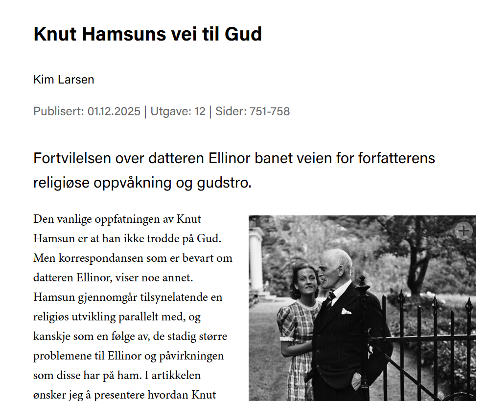 Styret i Hamsun-Selskapet drøftet i møte 7. oktober 2025 de synspunktene og oppfordringene som Alf Einar Øien tok opp i sitt innlegg på Selskapets hjemmeside i slutten av september: «Veien videre for Hamsun-Selskapet» .Vi er takknemlige for engasjementet og delingen av refleksjoner rundt Selskapets rolle og retning framover.